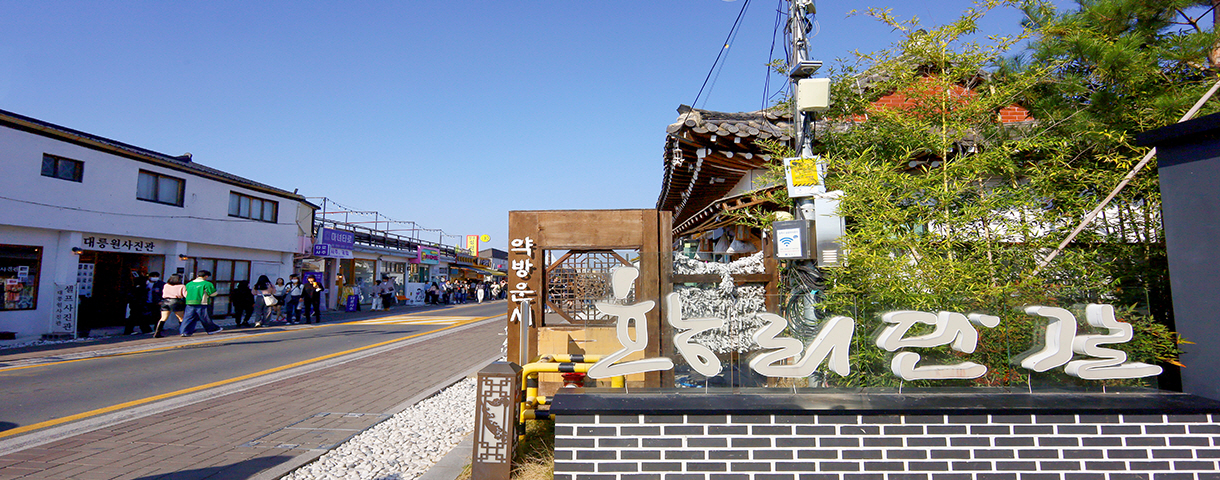 Rue de cafés et restaurants traditionnels dans un style hanok, endroit branché à Gyeongju