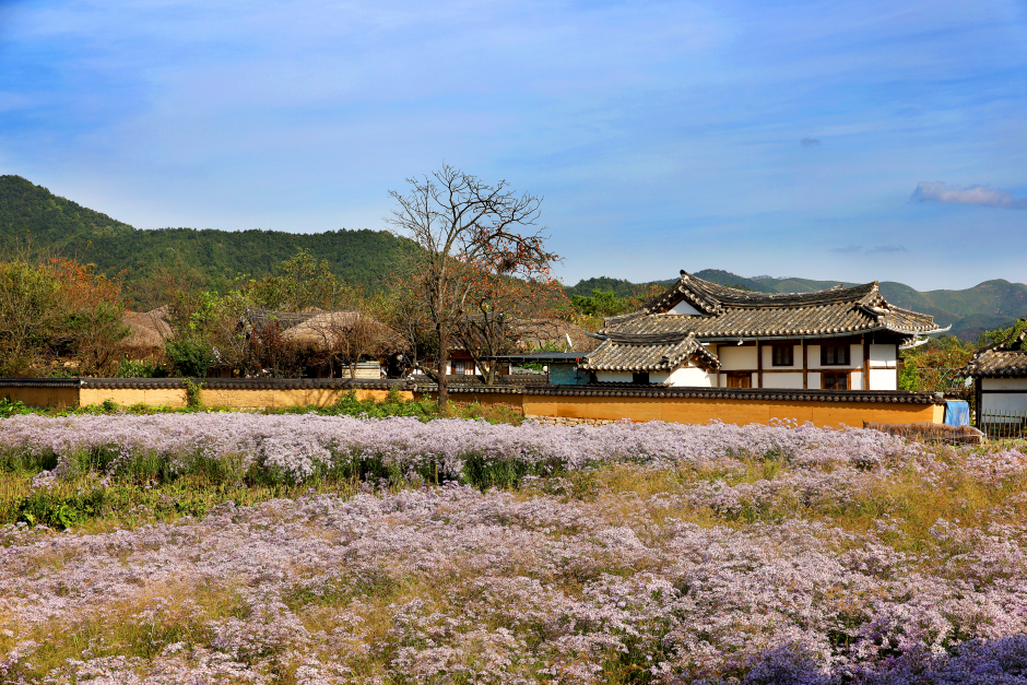 Un village de clans aux couleurs folkloriques de Corée, classé au patrimoine mondial de l’Unesco.